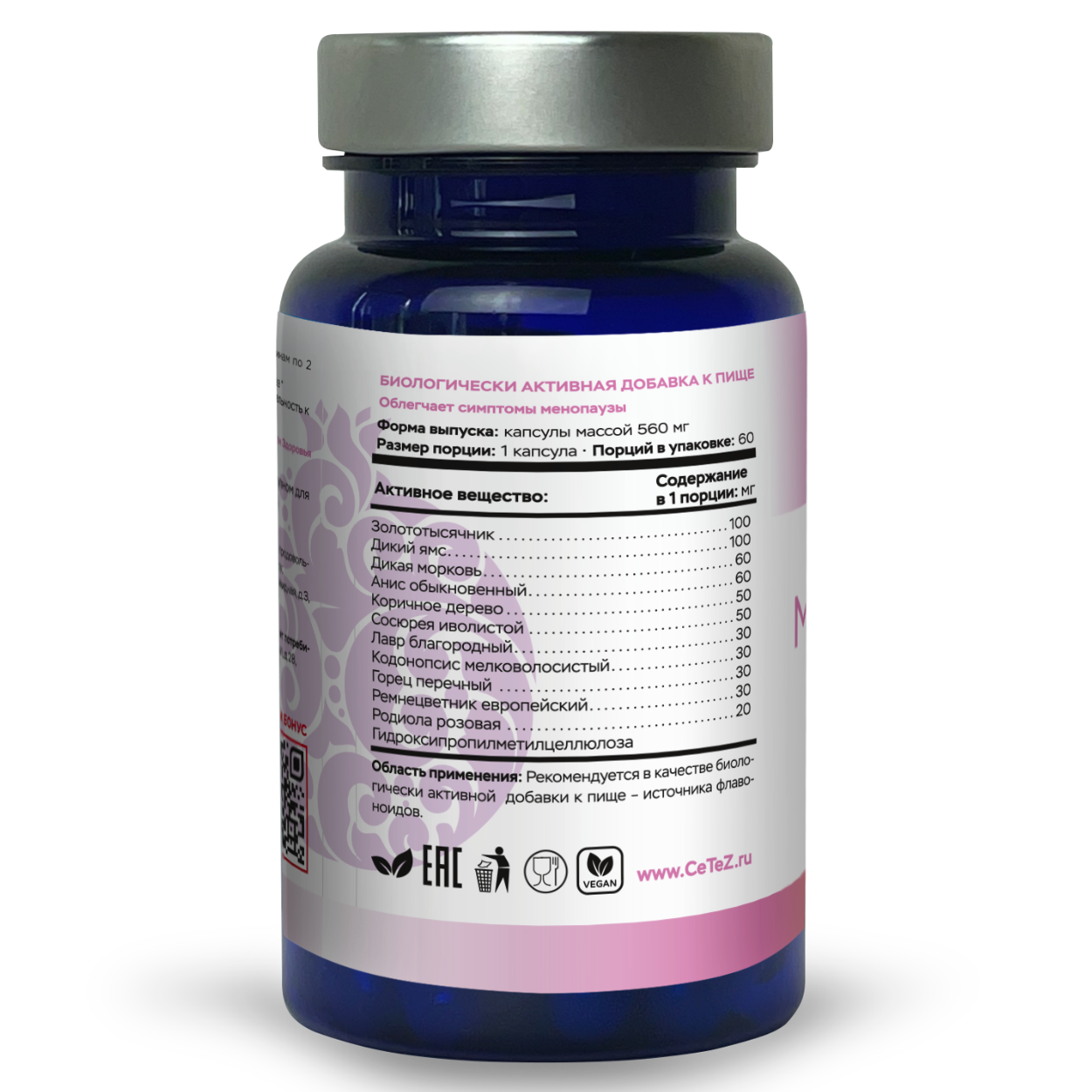 1. Структурированная формула, а не случайный набор трав. МенопаузРелив — это выверенная композиция из 11 компонентов с распределением по функциональным задачам.